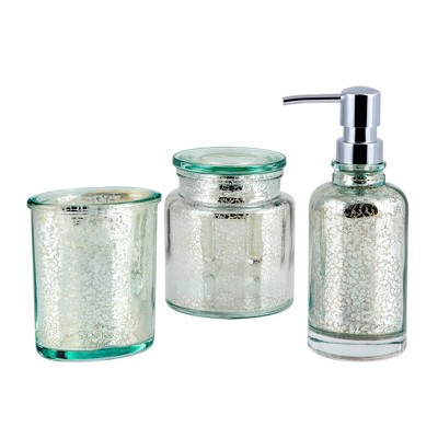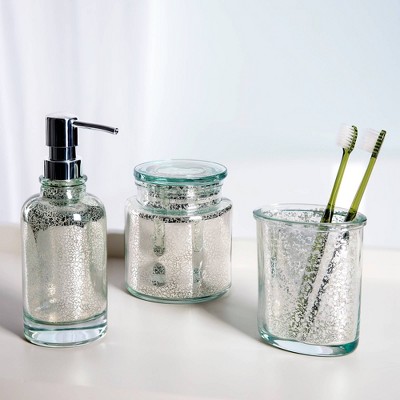 This set of christmas ornaments feature asymmetrical ball ornaments in a distressed silver finish. Bathroom fitting silver grey bath tub overflow set, dimension: A wide variety of silver glass bathroom mirror options are available to you, such as project solution capability, design style, and mirror shape. Comparable to what i've purchased from other retailers over the years. Mygift decorative silver glass mercury antique apothecary storage jars/wedding candy serving canister containers with lids, set of 4. Alibaba.com offers 20934 silver glass bathroom mirror products. Mercury glass, or silvered glass, along with stained glass windows, of course, is considered to be one of the first art forms that utilized glass ultimately for its intrinsically artistic mercury glass soap dishes and toothbrush holders sets. Add a touch of opulence to your bathroom with the mercury glass soap/lotion dispenser from opalhouse™. Our collection of silver and gold mercury glass can be dressed up or dressed down to accommodate the look you are goi. Set of 3 in assorted designs. Where you create spaces as bold as your spirit. How to set diaberter plate set in bathroom. Mercury glass adds a shimmery, rustic touch to your home, but the real thing can be pricey.